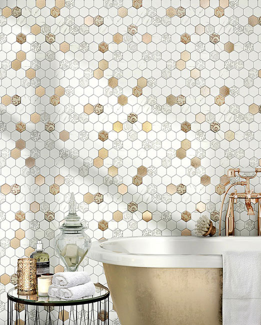 کاشی لوکس مدل رایان شش ضلعی سرامیک چیتا البرز سفید طلایی